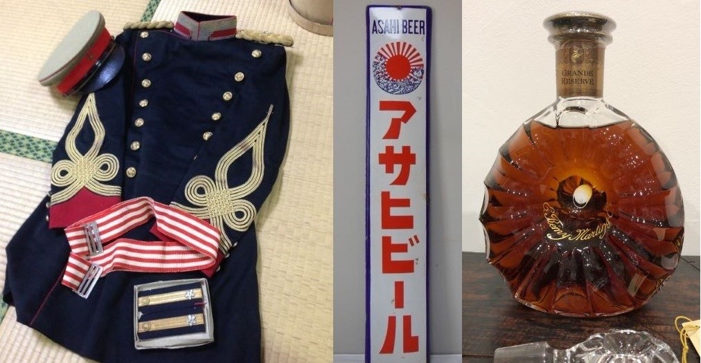 古い民芸品や、昔の商店で使われていた道具、戦前・戦中の品々、軍隊のヘルメットや水筒、勲章、古い写真類、絵葉書、レコード、ホーロー看板、時計、ガラスランプ、ブリキ玩具、プラモデル、古いゲーム機、明治・大正・昭和レトロなお品物、また、ご家族が海外旅行で購入されたお土産など――