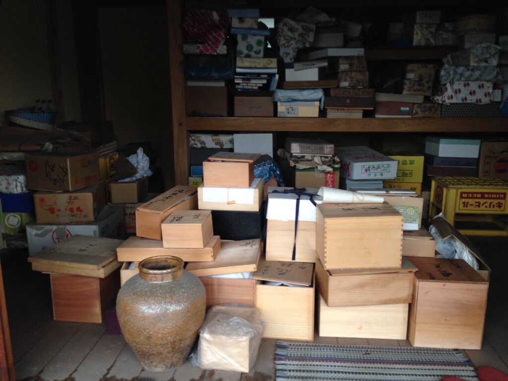 ご依頼をいただいたお客様のお母さまが集めた茶道具、骨董品、古い屏風、掛け軸など一品ずつ仕分けをしながらご説明をさせて頂きました。古い納屋の中に贈答品や記念品などが大量にございましたので、こちらもあわせてお値段をお付けいたしました。